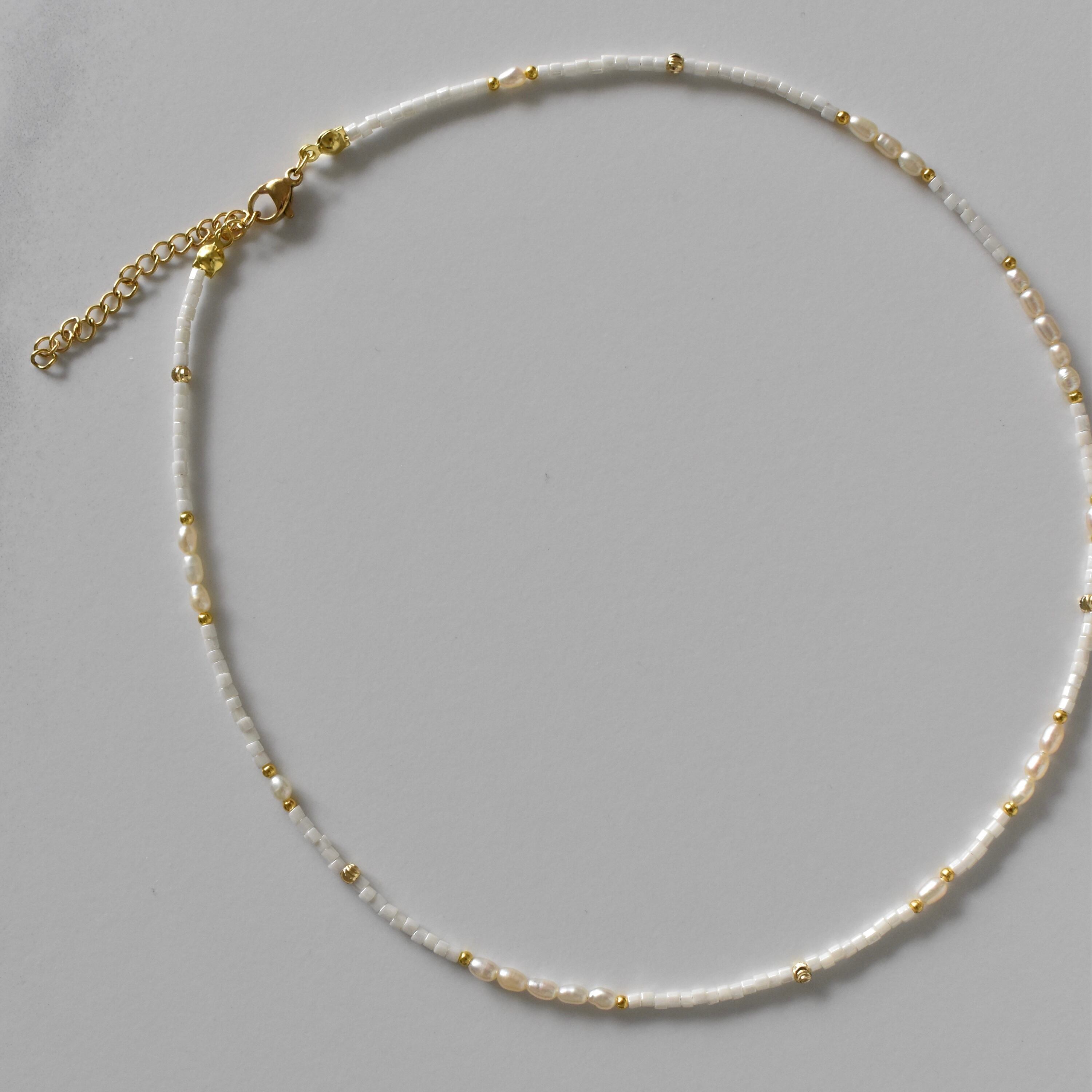 米粒型の淡水パールを不規則にセットした