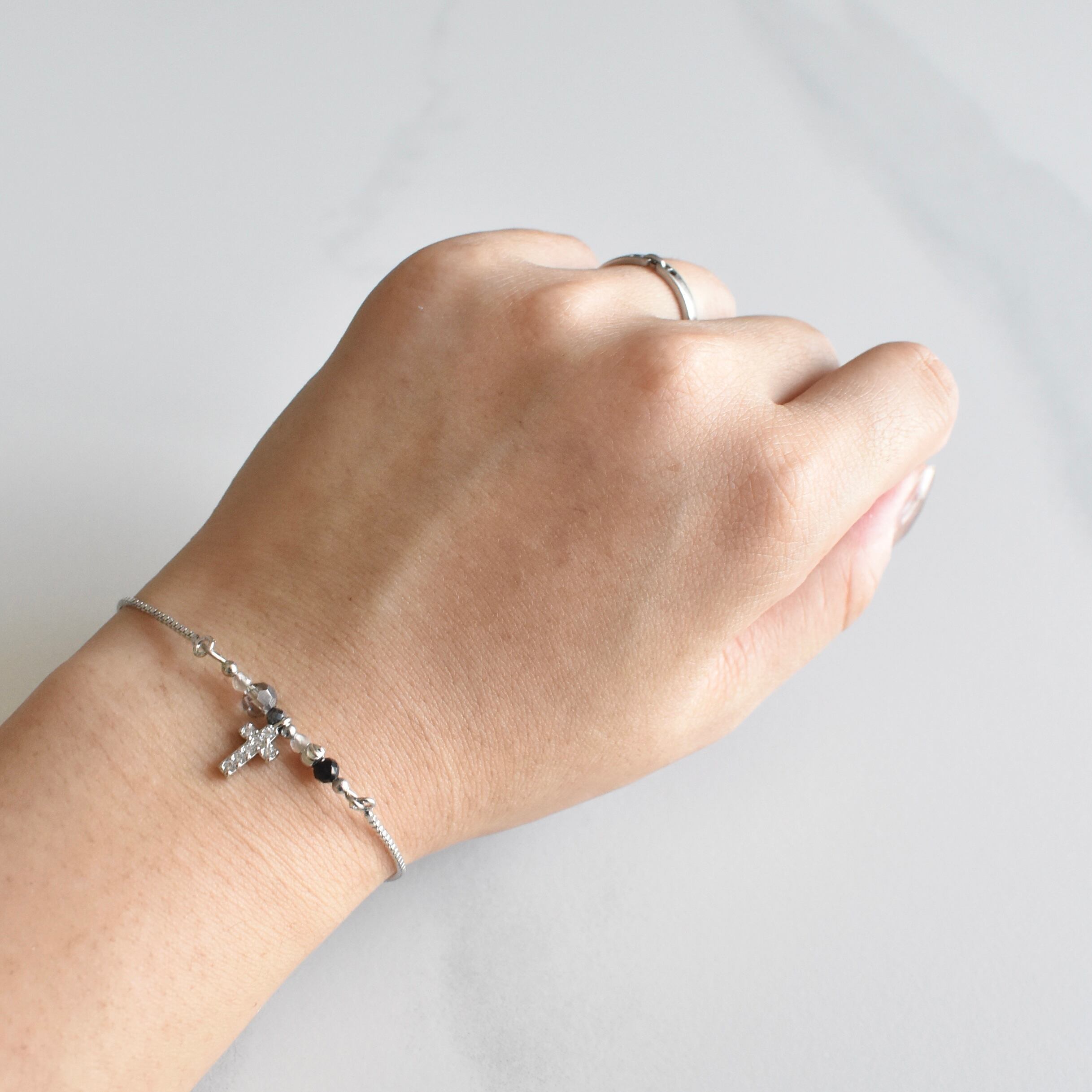 ジルコニアのついたクロスをワンポイントに、
