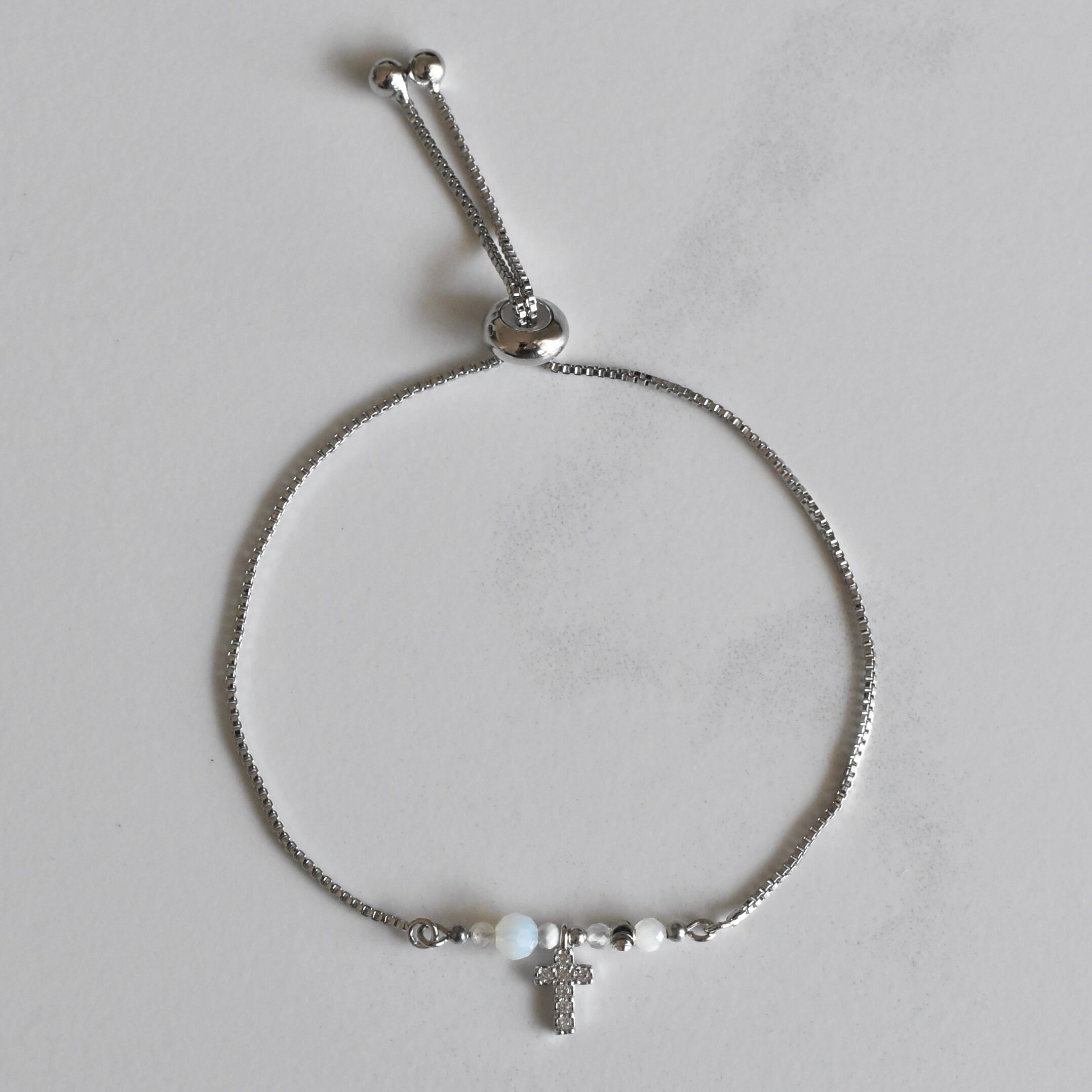cross charm slider「ホワイトムーンストーン(silver)」