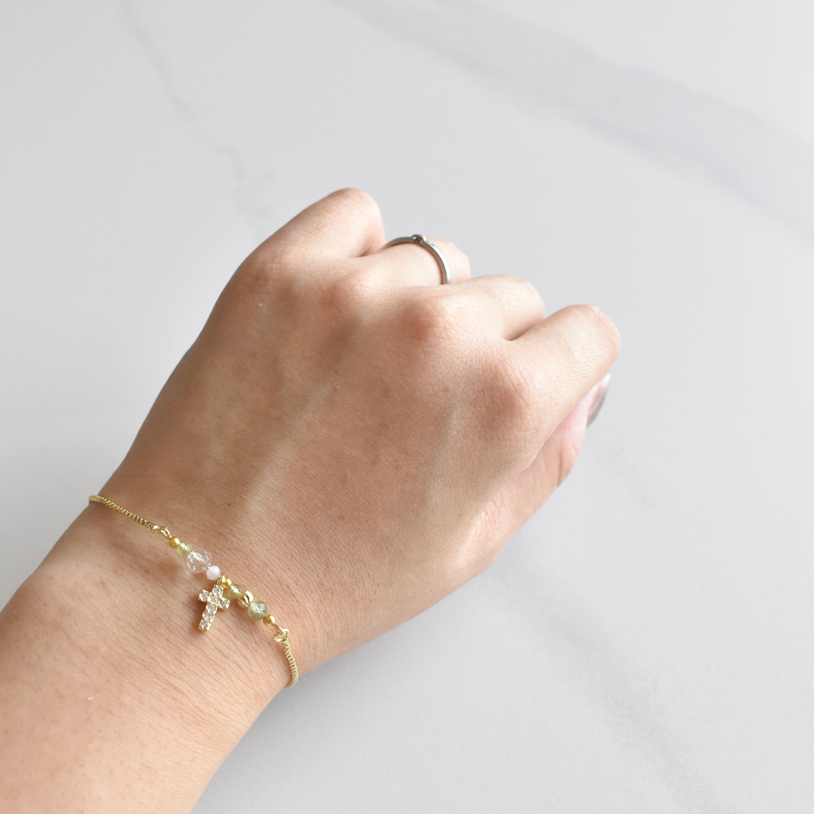 ジルコニアのついたクロスをワンポイントに、
