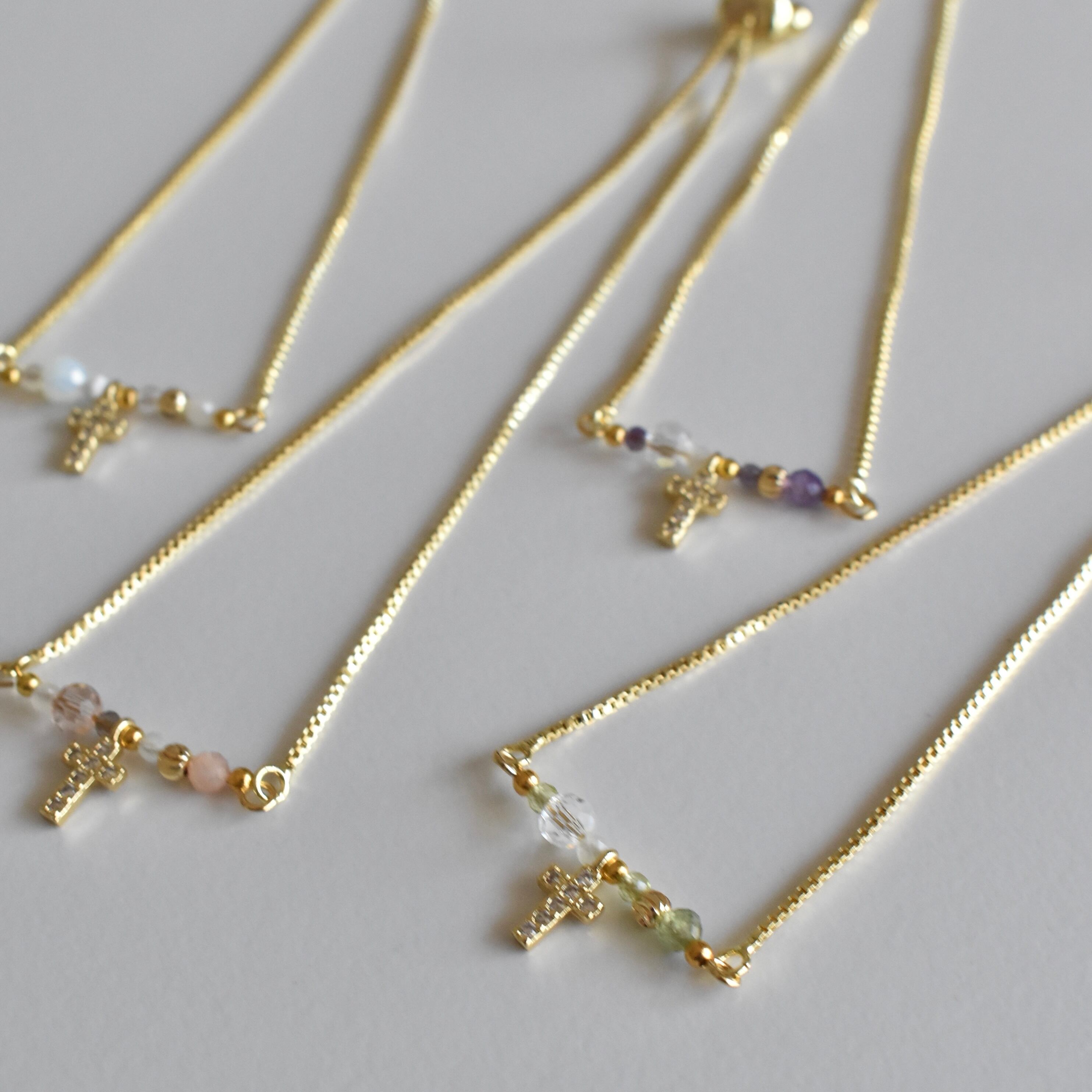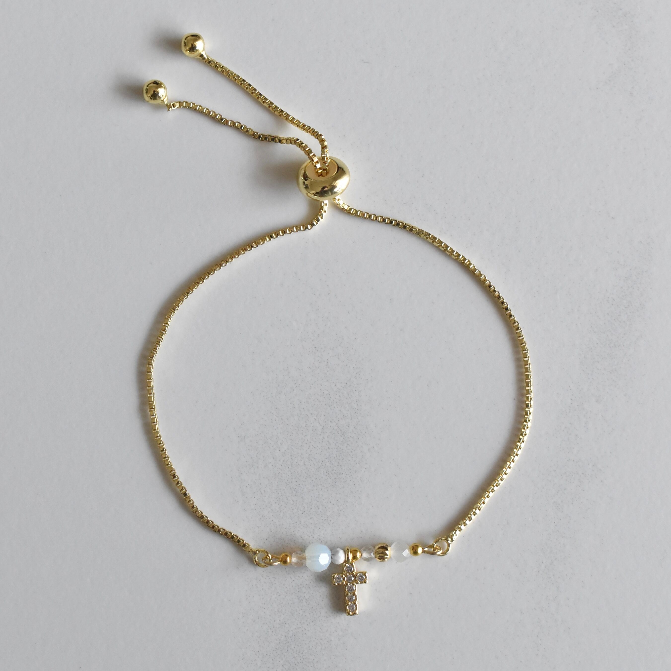 cross charm slider「ホワイトムーンストーン(gold)」