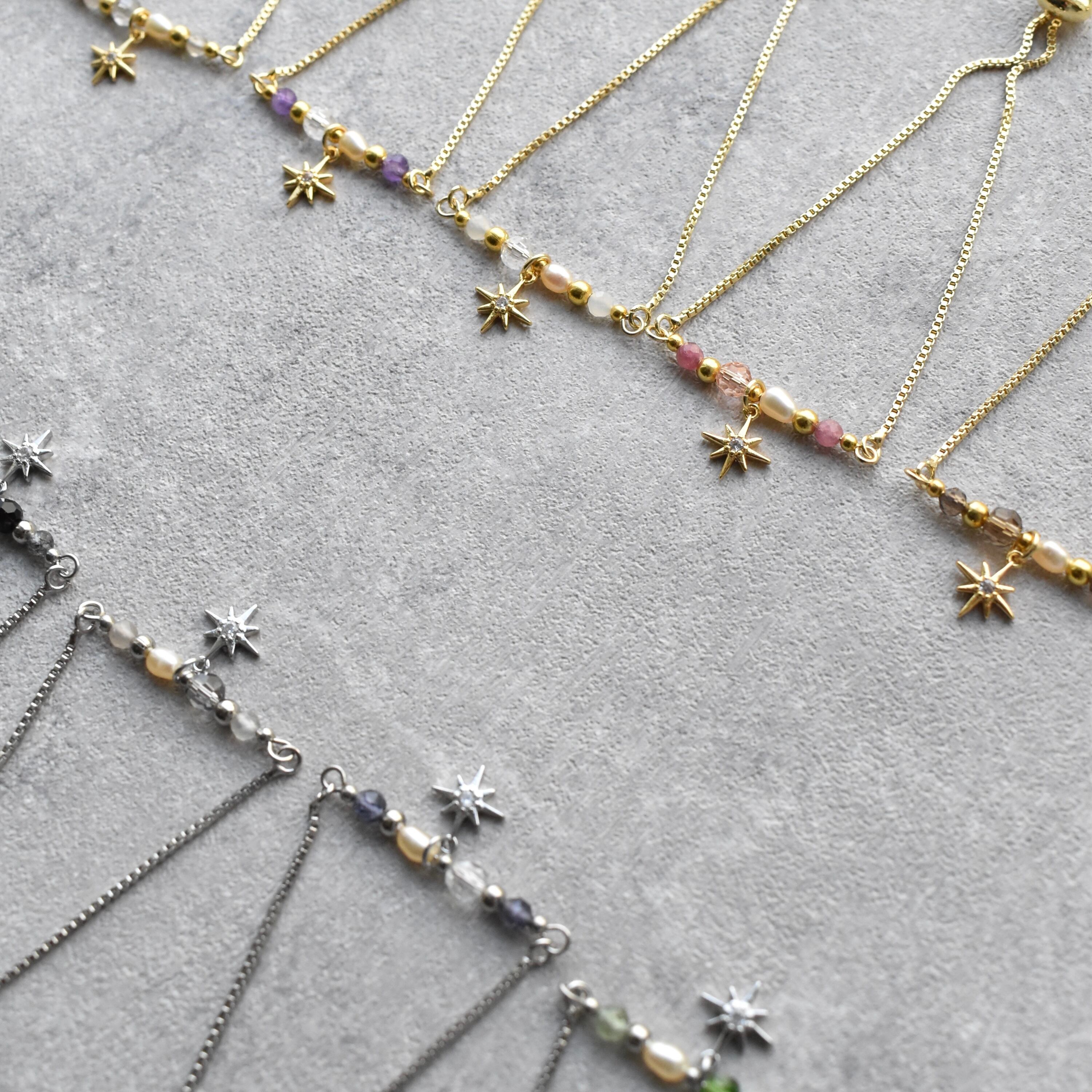 シンプルながらもワンポイントに使っていただけるような組み合わせに。